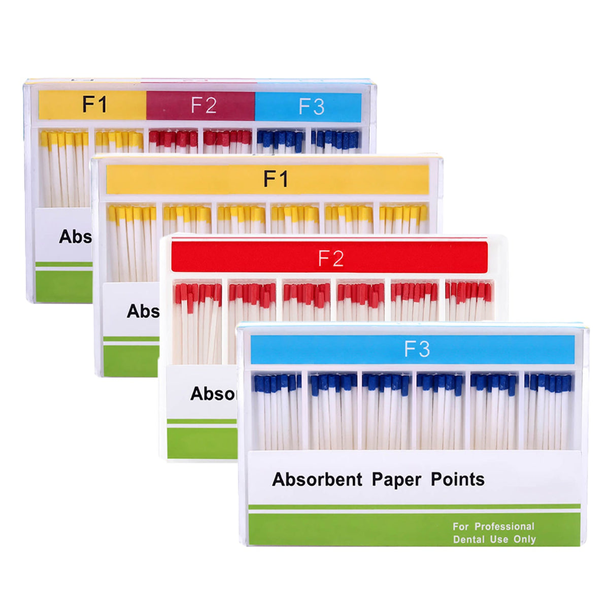Dental Absorbent Paper Points F Series F1 F2 F3 Color Coded 100pcs/Pack. For dental root endodontics. Hard and resilient, easy to use. Good hydrophilia and no viscidity. Tip colors avoid confusion of various types.