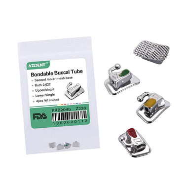 Buccal Tube 2nd Molar Bondable Non-Convertible Roth/MBT/Edgewise 0.018/0.018 U1L1 Laser Mark 4pcs/pack