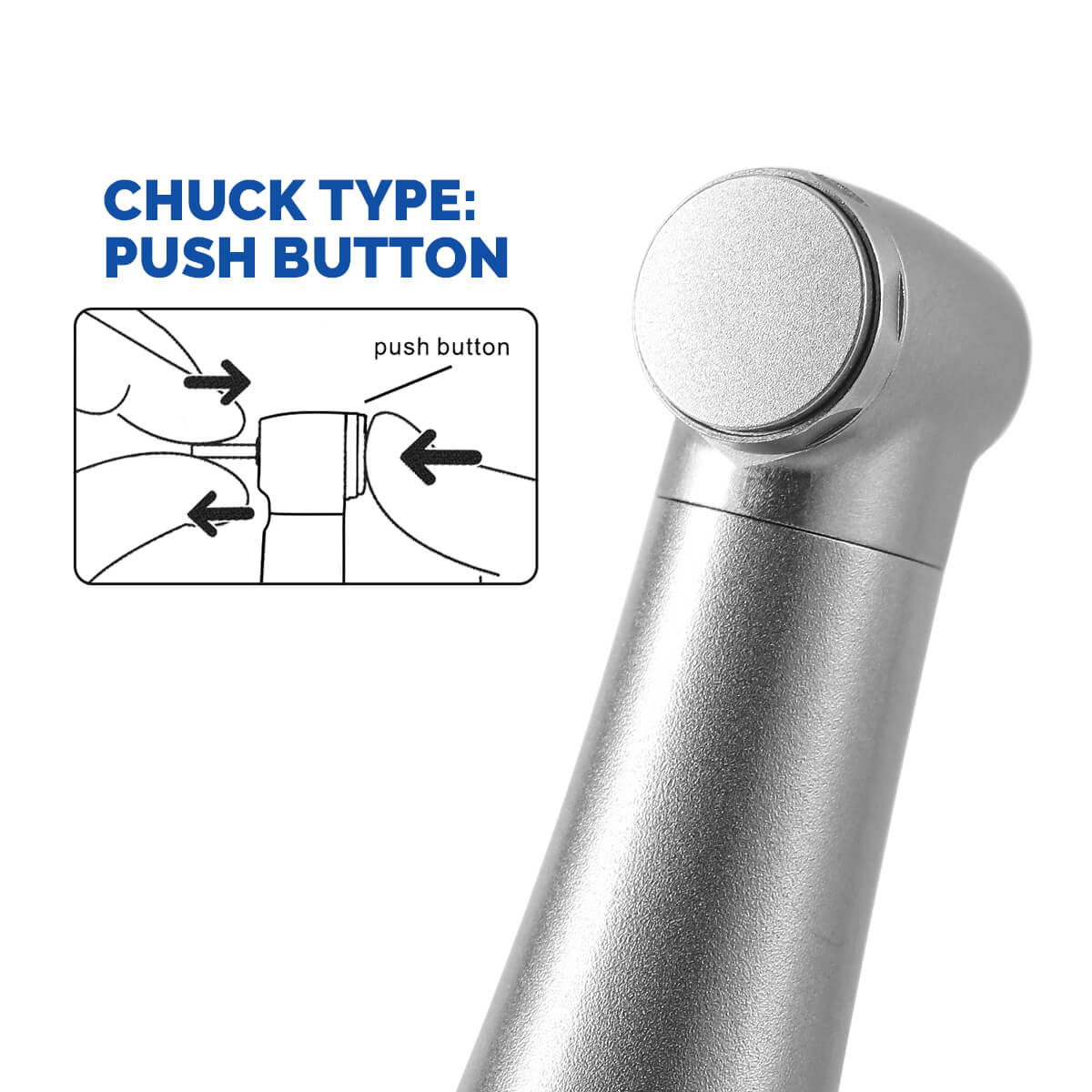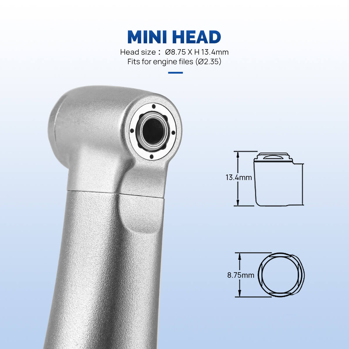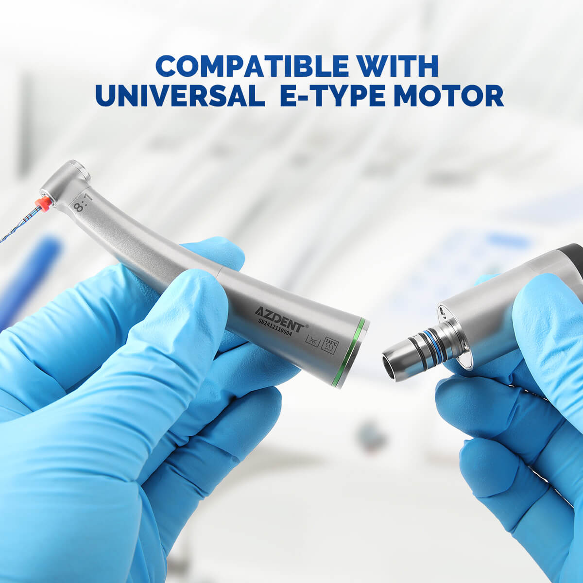 Dental Mini 8:1 Endo Contra Angle Handpiece Internal Channel For Endodontic or Prophy. Push button, quick and easy changing burs and files. Compatible with universal E-Type Motor.
