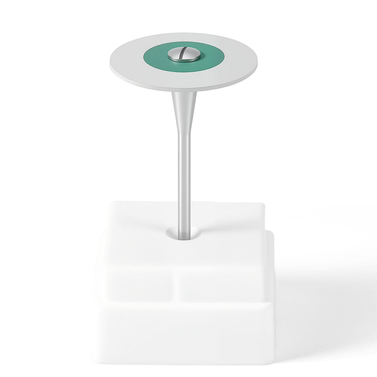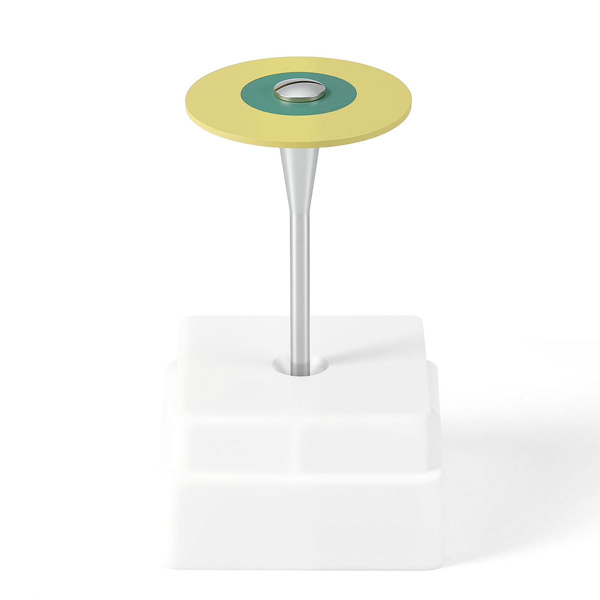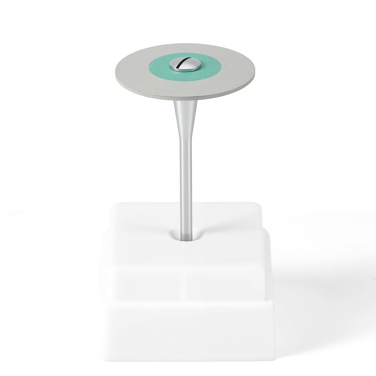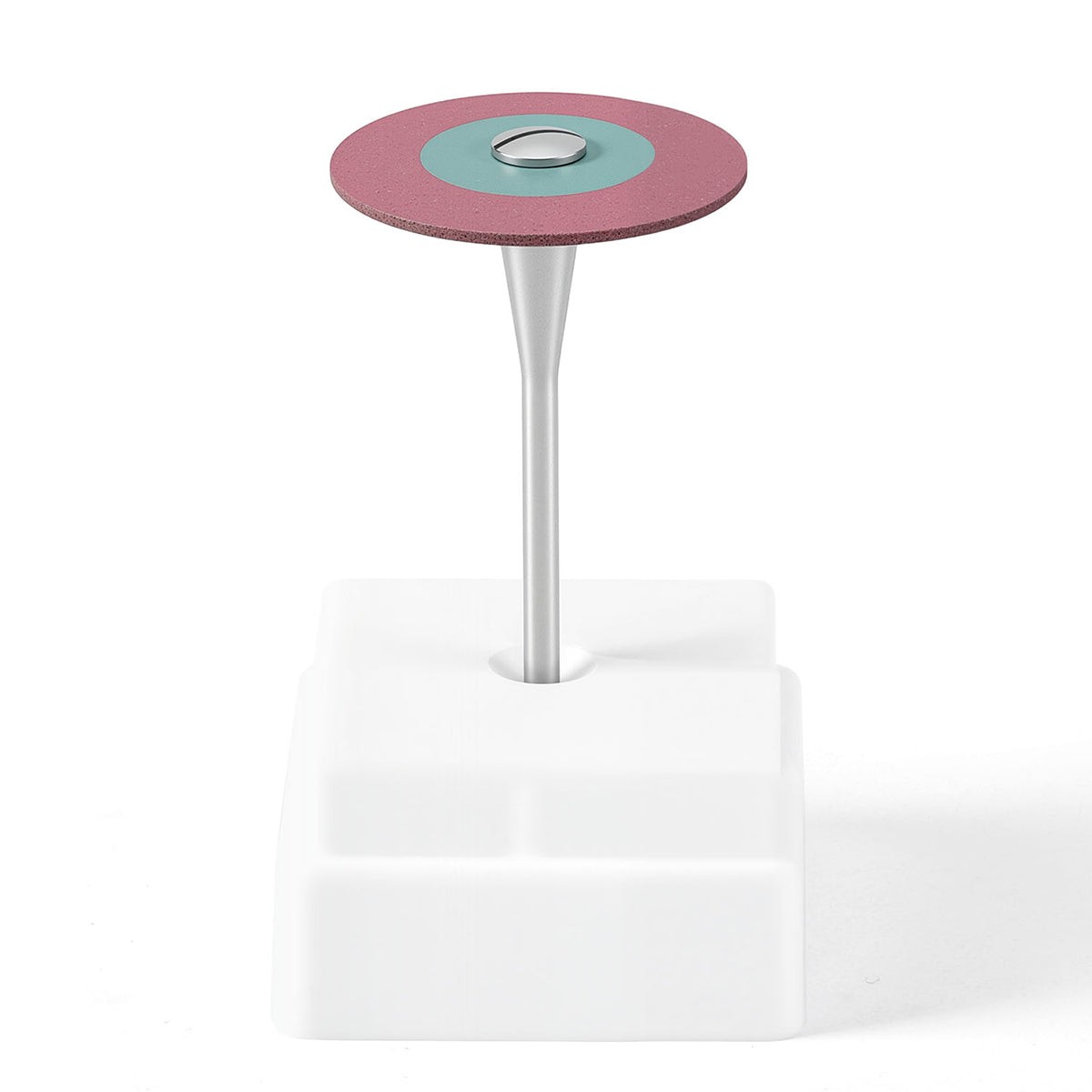 Dental Polishing Rubber Diamond Wheel Disc 26mm. 1pc/Box. 5 Models. Super coarse, Medium coarse, Fine, Extra Fine, Ultra Fine. Recommended R.P.M is 15,000-25,000/min and 10,000-20,000/min. Especially suitable for porcelain/ zirconia restorations. High diamond concentration for more efficiency.