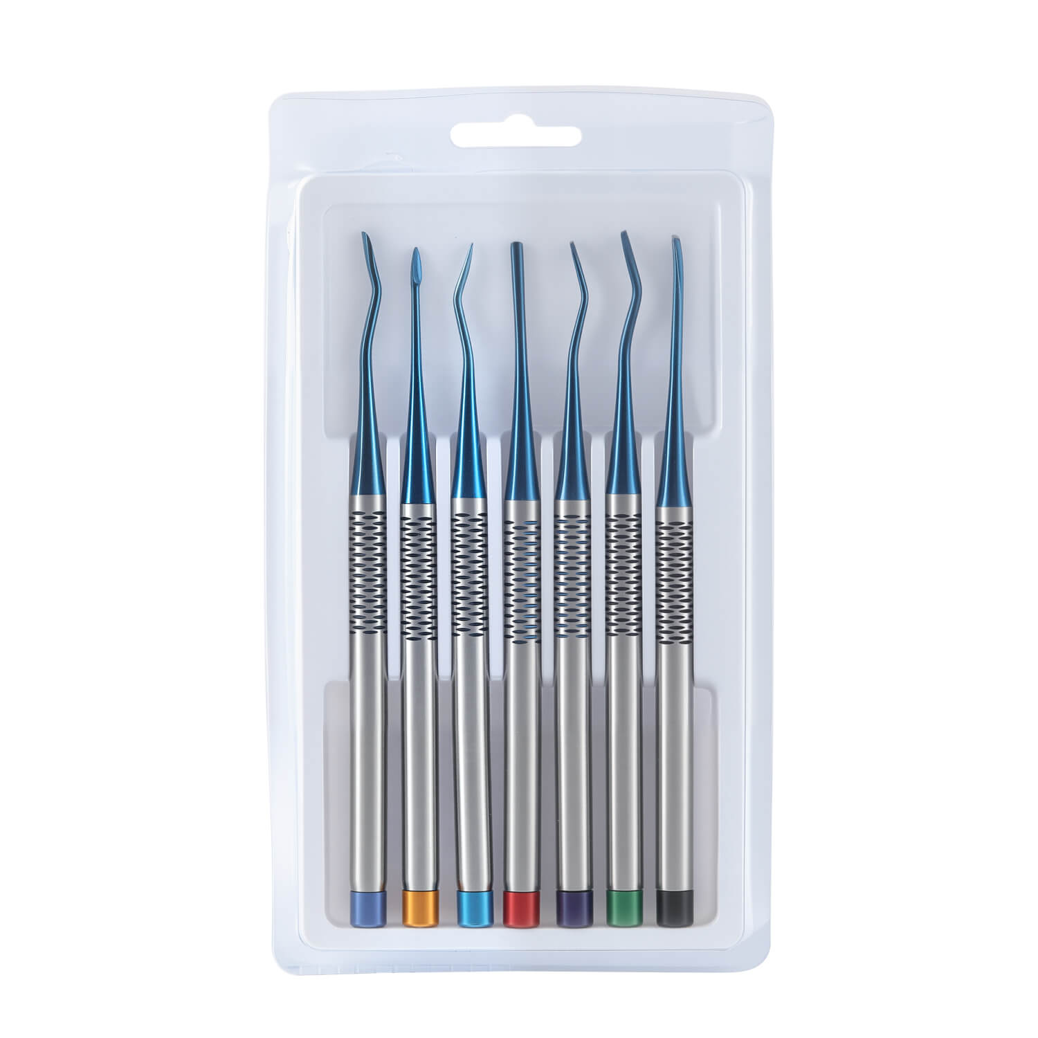 Dental Root Elevators Stainless Steel Minimally Invasive PDL Periotome 7Pcs/Set. Crafted from high-precision medical-grade stainless steel, this 7-piece set is engineered for durability and professional dental use. These Minimally Invasive Root Elevators are specifically designed to sever the periodontal ligament with minimal trauma, preserving the bone structure for optimal clinical results. With a versatile range of shapes and angles, this comprehensive kit provides the precision and reliability required for various complex extraction procedures.