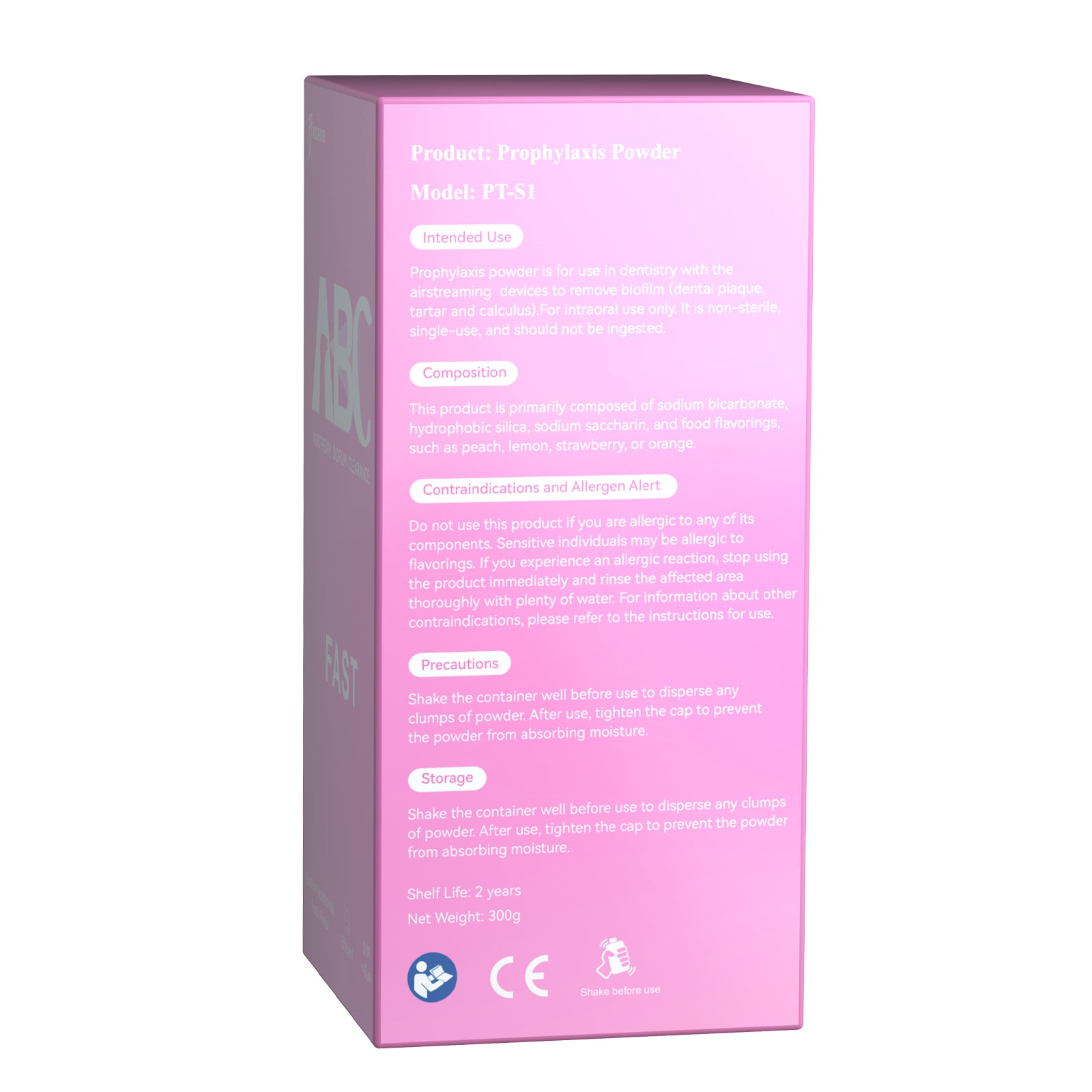 Woodpecker Air Polisher Prophylaxis Powder 65um Sodium Bicarbonate #FAST. Used for rapid removal of stubborn pigment, soft dirt and biofilm on the adult gingival. 2.5 Mohs' hardness, Provides efficient and rapid removal of stubborn pigment, soft dirt and biofilm on adult gingival.